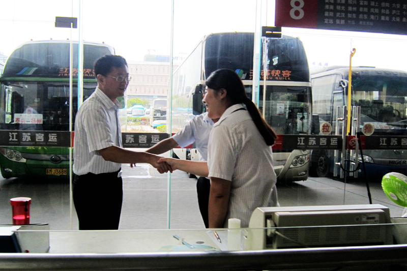 8月8日下午,市委常委、副市長(zhǎng)姚蘇華在市政協(xié)秘書長(zhǎng)、市交通運(yùn)輸局局長(zhǎng)王駿,市政府副秘書長(zhǎng)、政府辦主任湯天波,揚(yáng)州交通產(chǎn)業(yè)集團(tuán)董事長(zhǎng)凌衛(wèi)東、市運(yùn)管處處長(zhǎng)居遠(yuǎn)山等陪同下來(lái)到揚(yáng)州汽車東站慰問高溫下戰(zhàn)斗在一線的干部職工。集團(tuán)公司領(lǐng)導(dǎo)吳忠俊、顧懷、萬(wàn)雷、陳家宏陪同慰問。