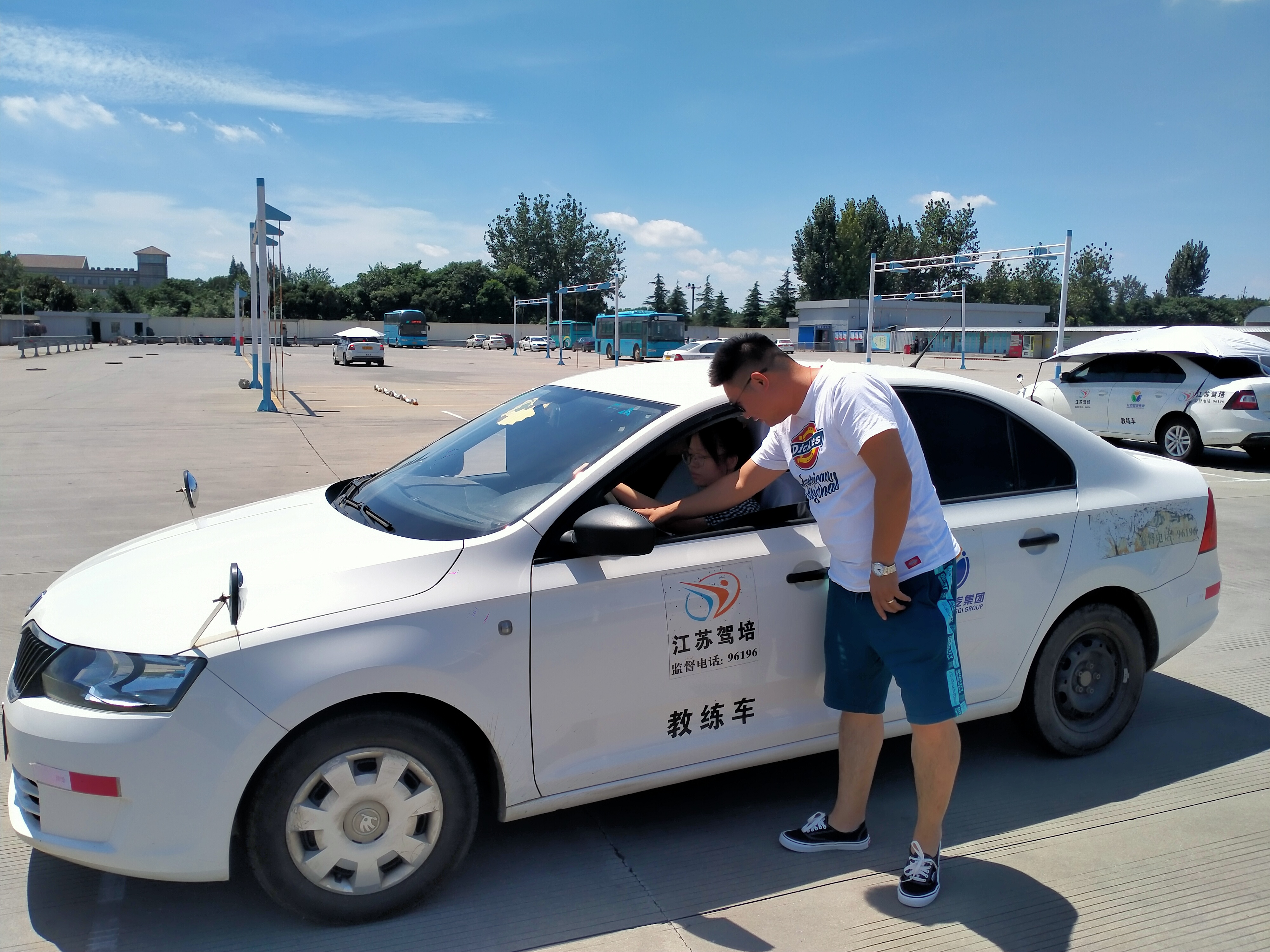 夏天教學是對教練員意志力、身體的雙重考驗。為了保證訓練安全,教學過程中教練員在車外指導學員從而導致車窗不能關,空調開著也就失去了效果。這樣的高溫下,沒有人愿意待在車里,學員都是練習完下車找地方乘涼。開車的人都知道,待在炎熱的車廂內是多么的煎熬,但是由于職責所在,我們的教練員都必須時刻保持高度警惕,寸步不離地堅守在自己的崗位上。
