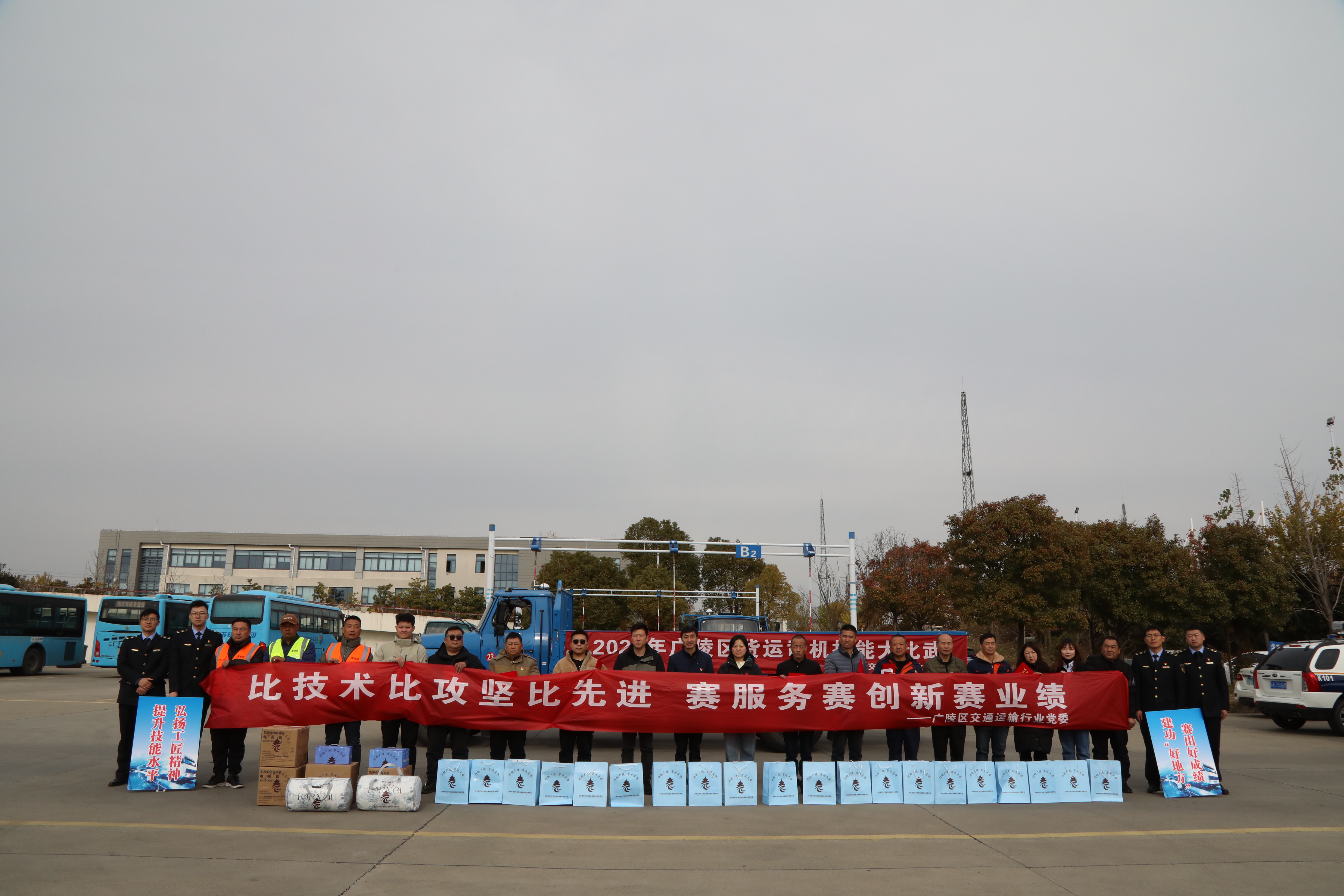 近日,廣陵區(qū)交通運(yùn)輸行業(yè)黨委、教培中心黨支部聯(lián)合開展貨車司機(jī)黨員“比技術(shù)比攻堅(jiān)比先進(jìn),賽服務(wù)賽創(chuàng)新賽業(yè)績(jī)”“三比三賽”技能大比武活動(dòng)。廣陵區(qū)交通運(yùn)輸局執(zhí)法大隊(duì)副大隊(duì)長(zhǎng)周光林、貨車司機(jī)黨支部黨員代表、教培中心黨支部黨員代表參加活動(dòng)。