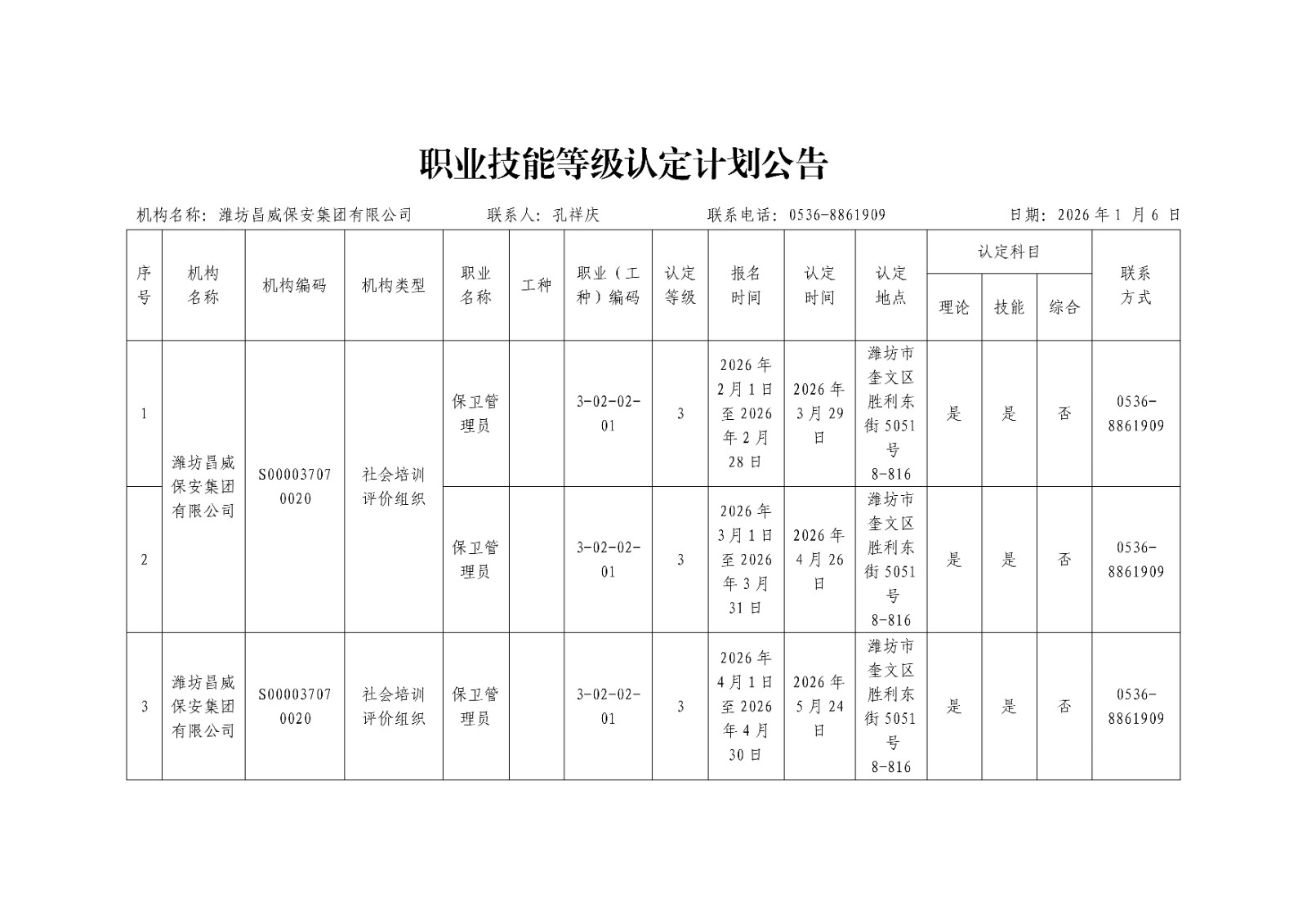 職業(yè)技能等級(jí)認(rèn)定計(jì)劃公告